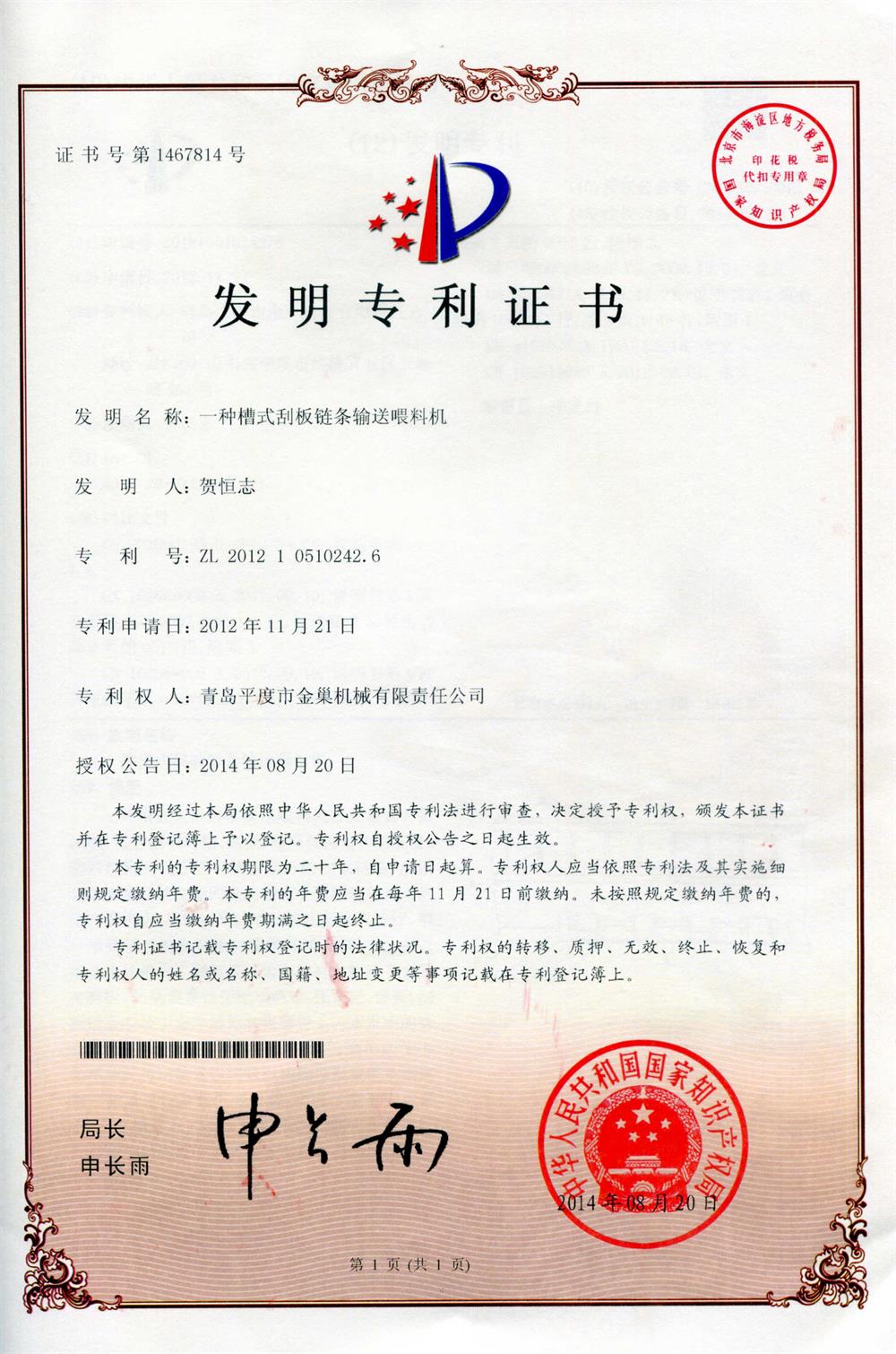 發明號:ZL201110241784.3